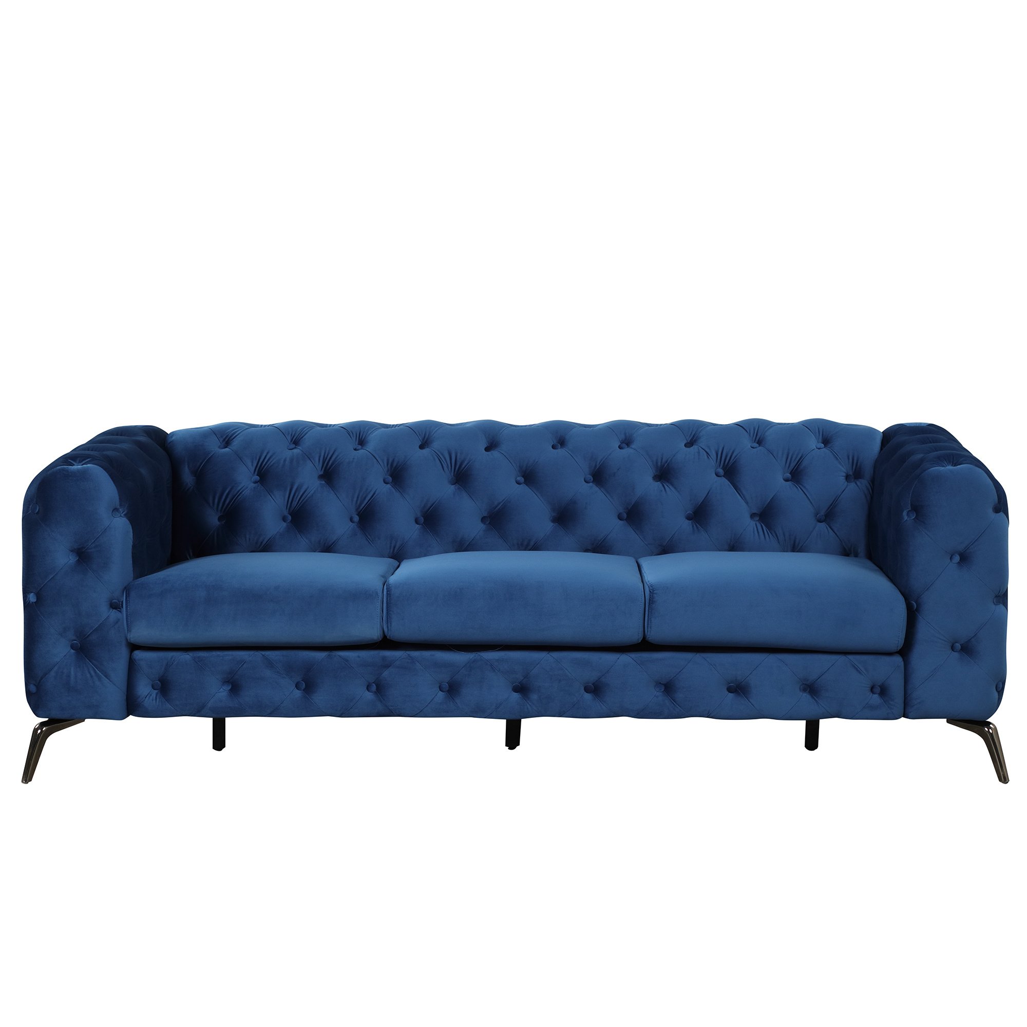 > 85.5" Velvet Upholstered Sofa with Sturdy Metal Legs,Modern Sofa Couch with Button Tufted Back, 3 Seater Sofa Couch for Living Room,Apartment,Home Off