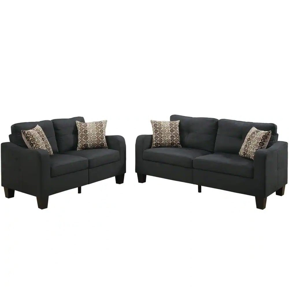 Home > Living Room Furniture 2pc Sofa Set Black Polyfiber Sofa And Loveseat w pillows Cushion Couch